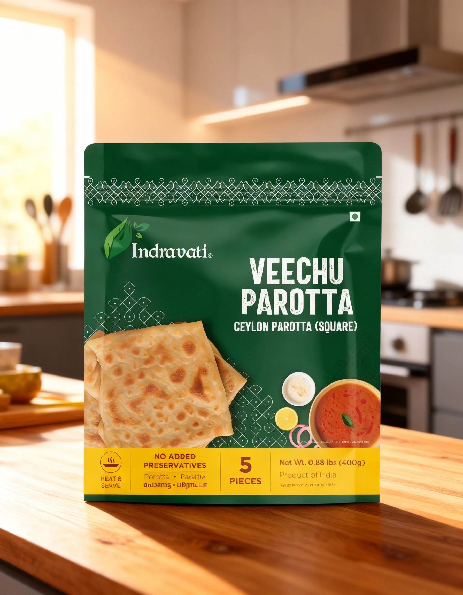 Soft, Layered, & Flaky. The Classic Companion. The Grand Tradition. Uncompromised Flavor. Experience the ultimate classic parotta. This Malabar style is known for being exceptionally Soft, Layered, & Flaky, making it the ideal accompaniment to soak up the richness of curries like stews, gravies, or Korma. A delicious taste of traditional cuisine, ready for your table. Heat & Serve.