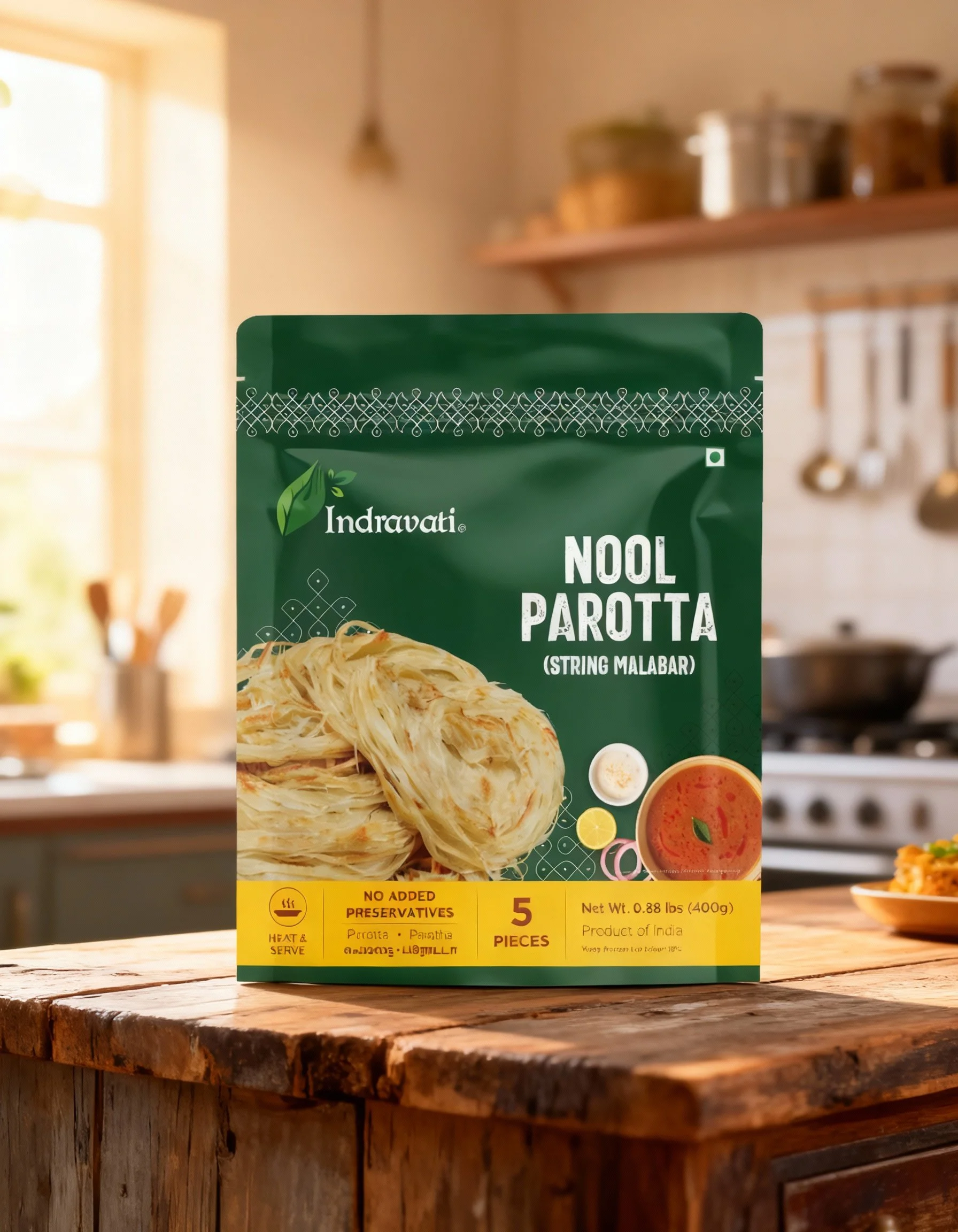 Ready for the Feast. Simple & Savoury.Ready to Season, this is the essential base for preparing the famous South Indian street food, Kothu Parotta. This product provides the parotta pre-cut and shredded, saving you preparation time. Simply sauté it with your favorite vegetables, spices, and proteins for a quick, authentic, and delicious meal. Sauté & Serve.